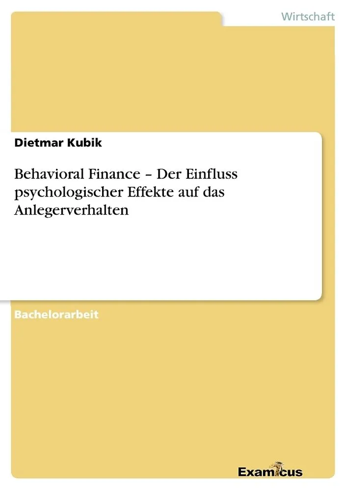 Bachelorarbeit aus dem Jahr 2012 im Fachbereich BWL - Bank, Börse, Versicherung, Note: 1,0, Ferdinand Porsche FernFH, Sprache: Deutsch, Abstract: Das Verhalten von Akteuren am Finanzmarkt kann nicht alleine durch die Annahmen der traditionellen Kapitalmarktthe...