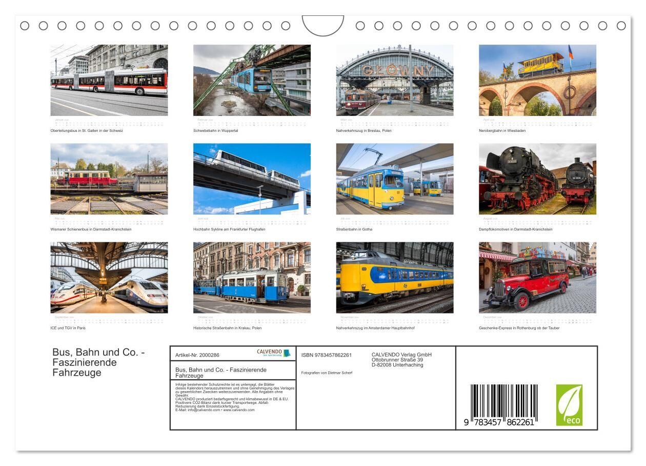 Die vielfältige Welt des Nah- und Fernverkehrs in einem Kalender: Dampflokomotive, Schwebebahn, Bergbahn, Hochbahn, Straßenbahn, Hochgeschwindigkeitszug und Oberleitungsbus. Profifotograf Dietmar Scherf dokumentiert Highlights und Hingucker unter Bussen, Bahne...