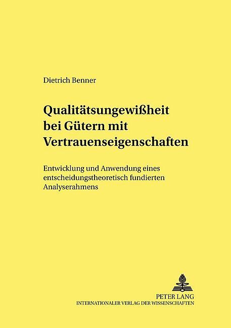 Qualitätsungewißheit erfaßt das Problem asymmetrischer Information bei Vertrauenseigenschaften und geht über Qualitätsunsicherheit hinaus, die nur bei Erfahrungseigenschaften auftritt. Informationsökonomische Modelle können Qualitätsungewißheit bisher nur unzu...