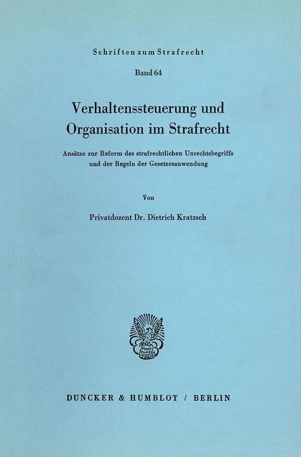 Verhaltenssteuerung und Organisation im Strafrecht.