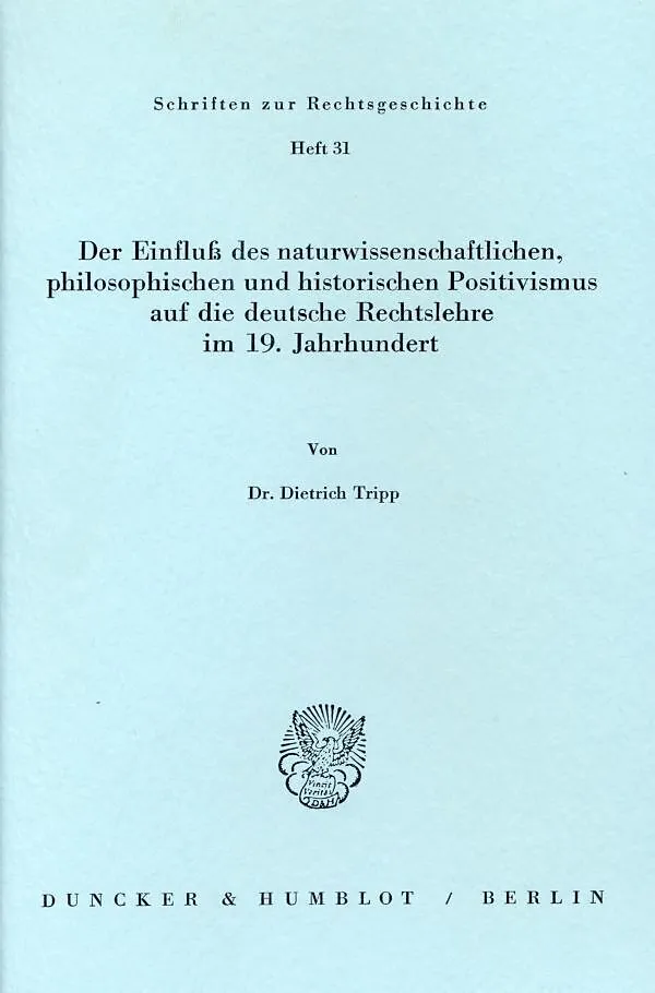 Der Einfluß des naturwissenschaftlichen, philosophischen und historischen Positivismus auf die deutsche Rechtslehre im 19. Jahrhundert.