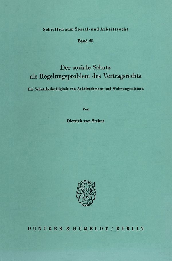 Der soziale Schutz als Regelungsproblem des Vertragsrechts.