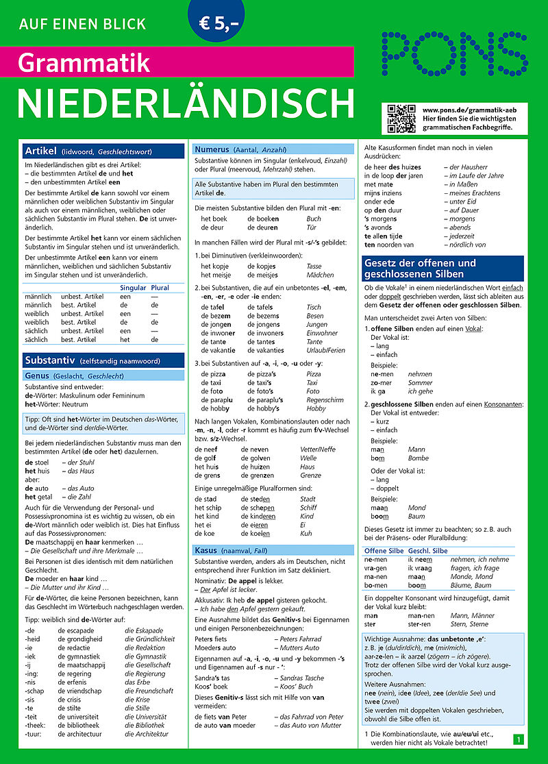 Die ganze niederländische Grammatik auf einen Blick Alle wichtigen grammatischen Themen auf einen Blick zum schnellen Nachschlagen und Lernen. Alle wichtigen grammatischen Fachbegriffe mit Definitionen und Beispielen zum Herunterladen und Ausdrucken. Aus stra...