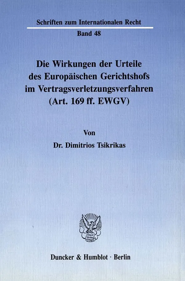 Die Wirkungen der Urteile des Europäischen Gerichtshofs im Vertragsverletzungsverfahren (Art. 169 ff. EWGV).
