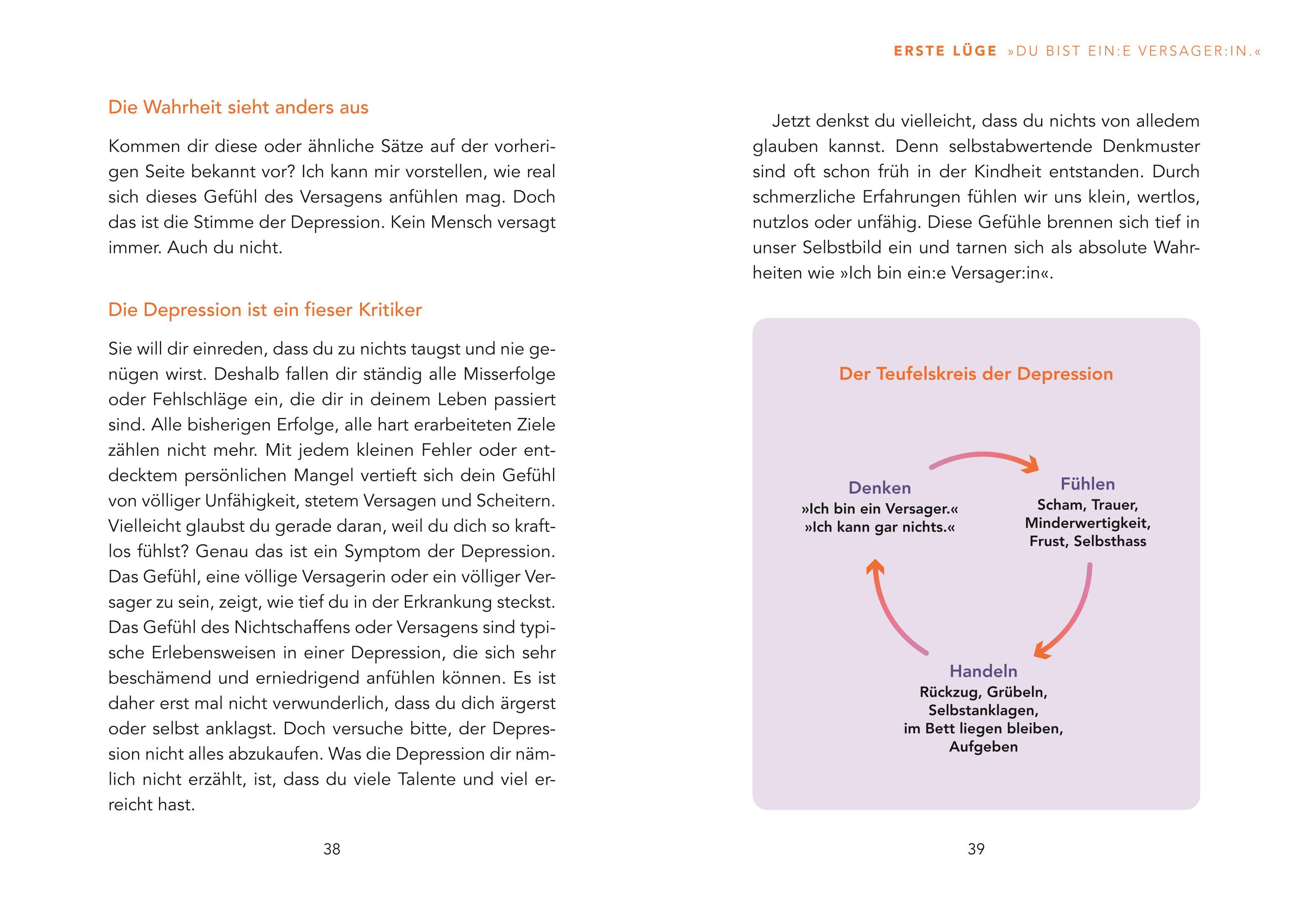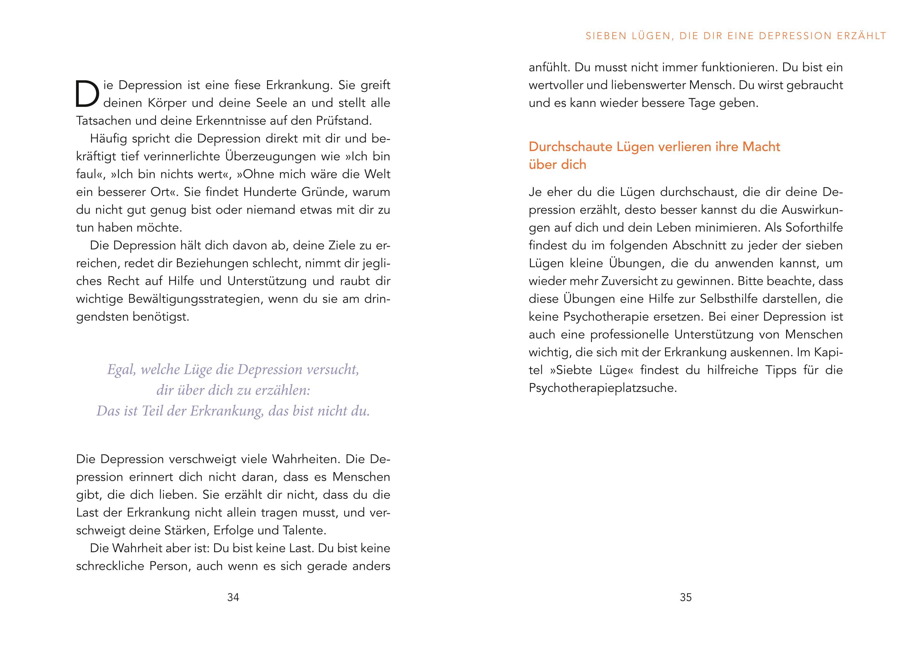 Die einzigartig niedrigschwellige Soforthilfe für depressive Phasen für die Hosentasche Die Lügen, die eine Depression erzählt, isolieren und entmutigen Betroffene. Eine der Wahrnehmung verzerrenden Lügen lautet zum Beispiel: Dir wird es nie wieder besser gehe...