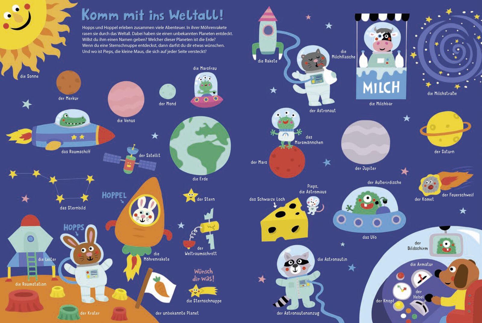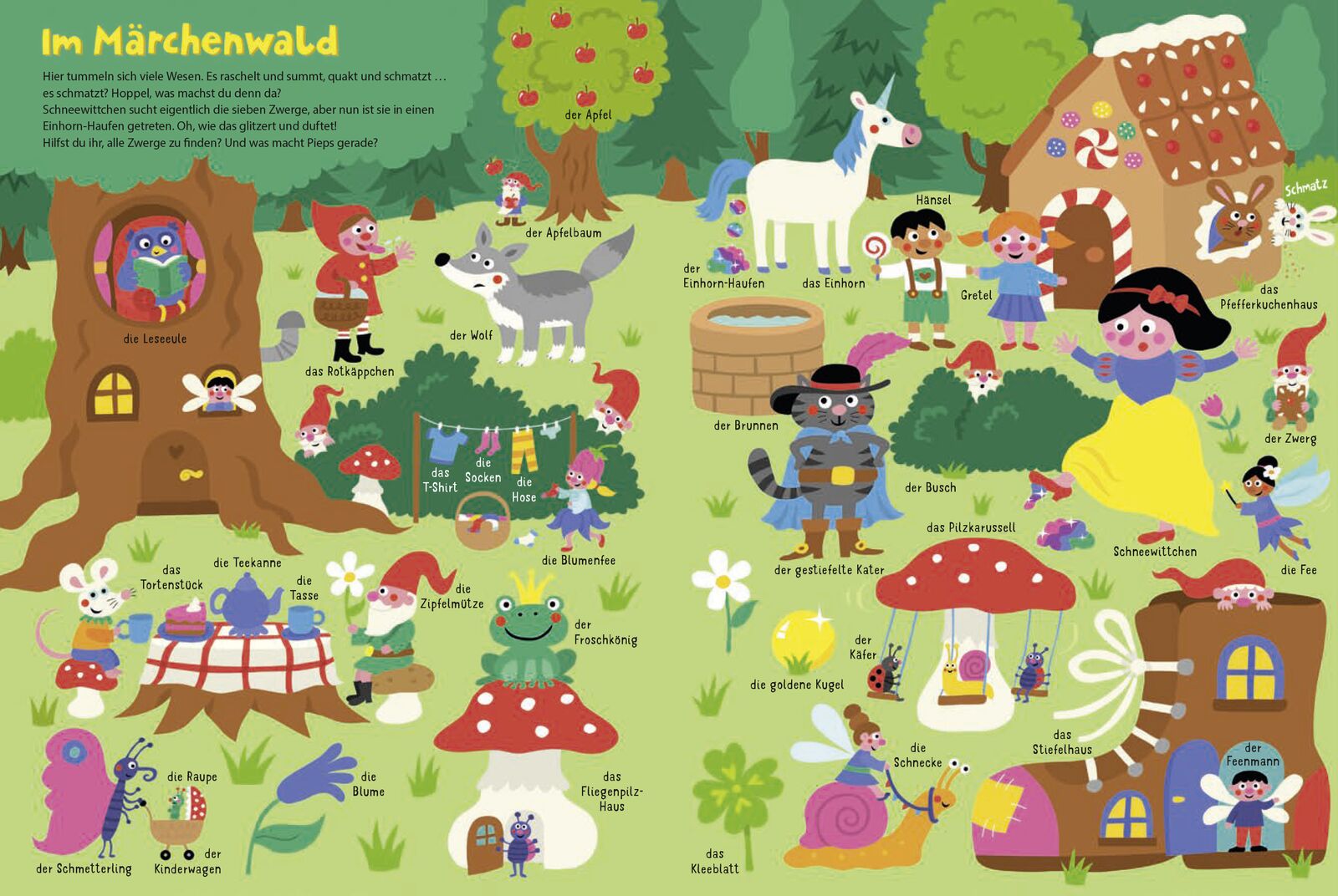 Hier geht es auf Abenteuerreise durch die beliebtesten Kinderwelten: Im Weltall machen wir Halt an der Milchstraße, bei den Dinos entdecken wir den Supersaurus und im Märchenwald darf am Pfefferkuchenhaus geknuspert werden. Dieses lustige Bildwörterbuch volle...