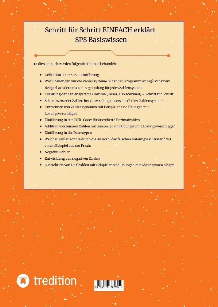 In diesem Buch werden folgende Themen behandelt: •Definition einer SPS Einführung •Wozu benötigen wir die Zahlensysteme in der SPS Programmierung? Mit einem Beispiel aus der Praxis Begründung für jedes Zahlensystem •Erklärung der Zahlensysteme (...