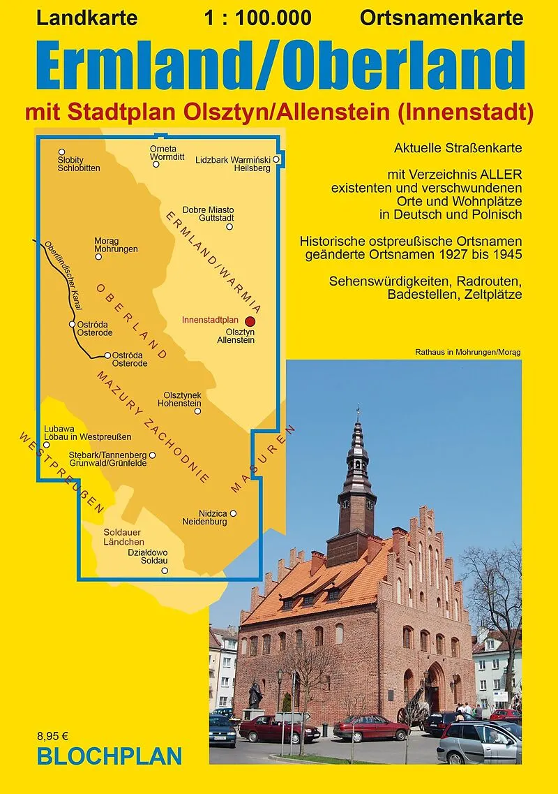 Die Karte stellt den zentralen Teil der heutigen Woiwodschaft Ermland-Masuren in Ostpreußen dar den Bereich zwischen den Städten Olsztyn (Allenstein), Orneta (Wormditt), Lidzbark Warmiski (Heilsberg), Ostróda (Osterode), Lubawa (Löbau in Westpreußen), Nidzica ...
