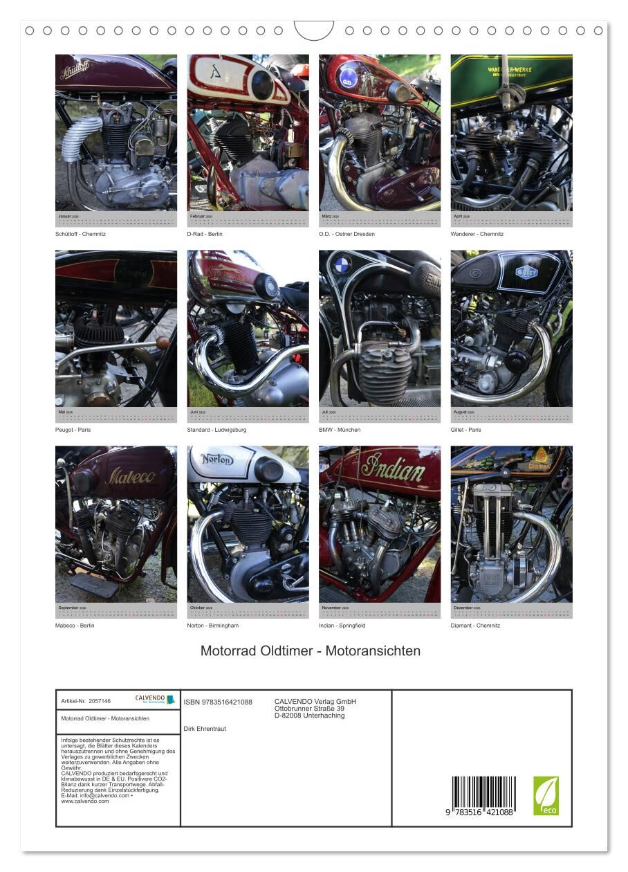 Motorrad Oldtimer - Motoransichten (Wandkalender 2026 DIN A3 hoch), CALVENDO Monatskalender
