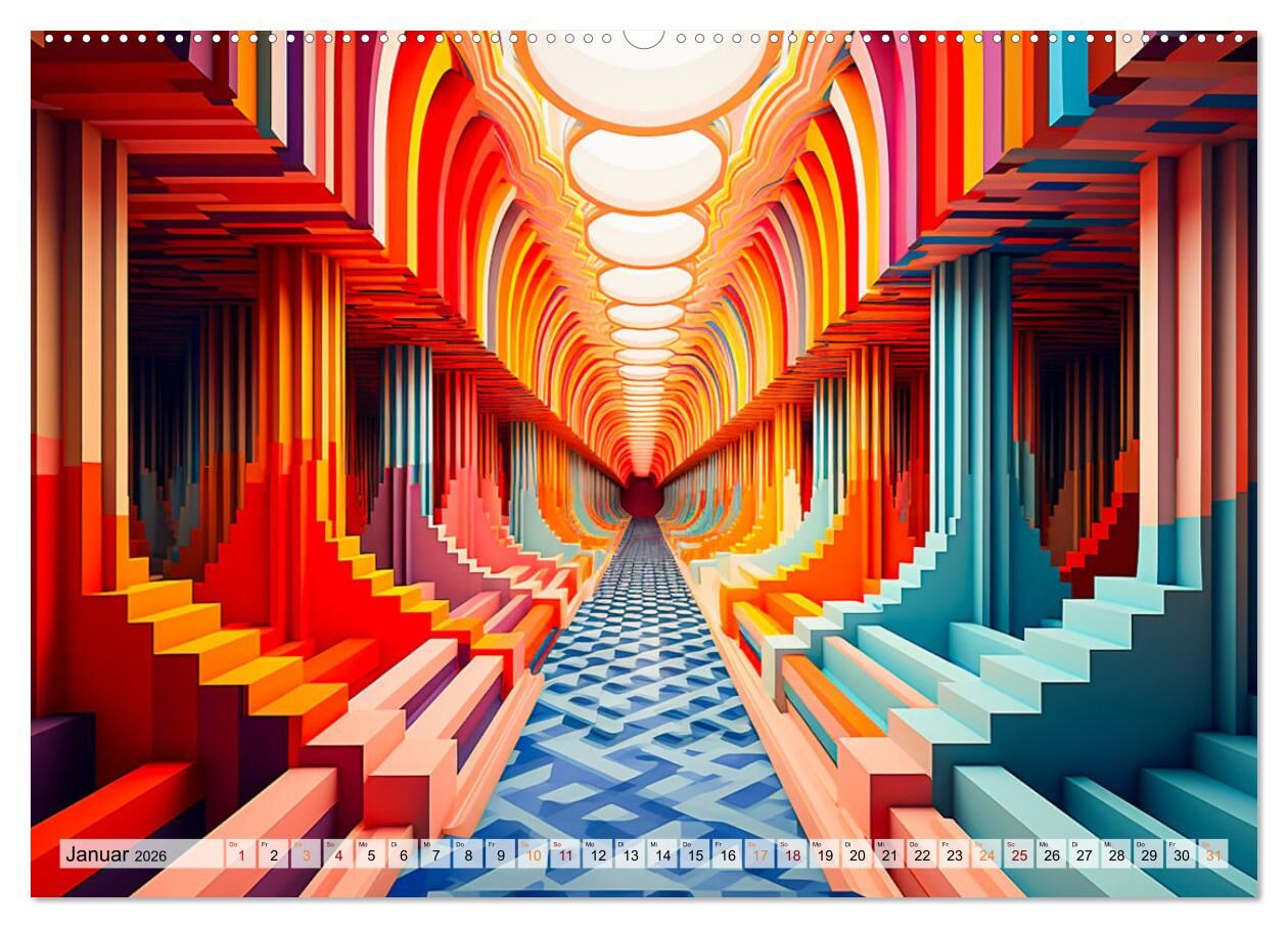 3D - Abstrakte und futuristische Illustrationen (hochwertiger Premium Wandkalender 2026 DIN A2 quer), Kunstdruck in Hochglanz