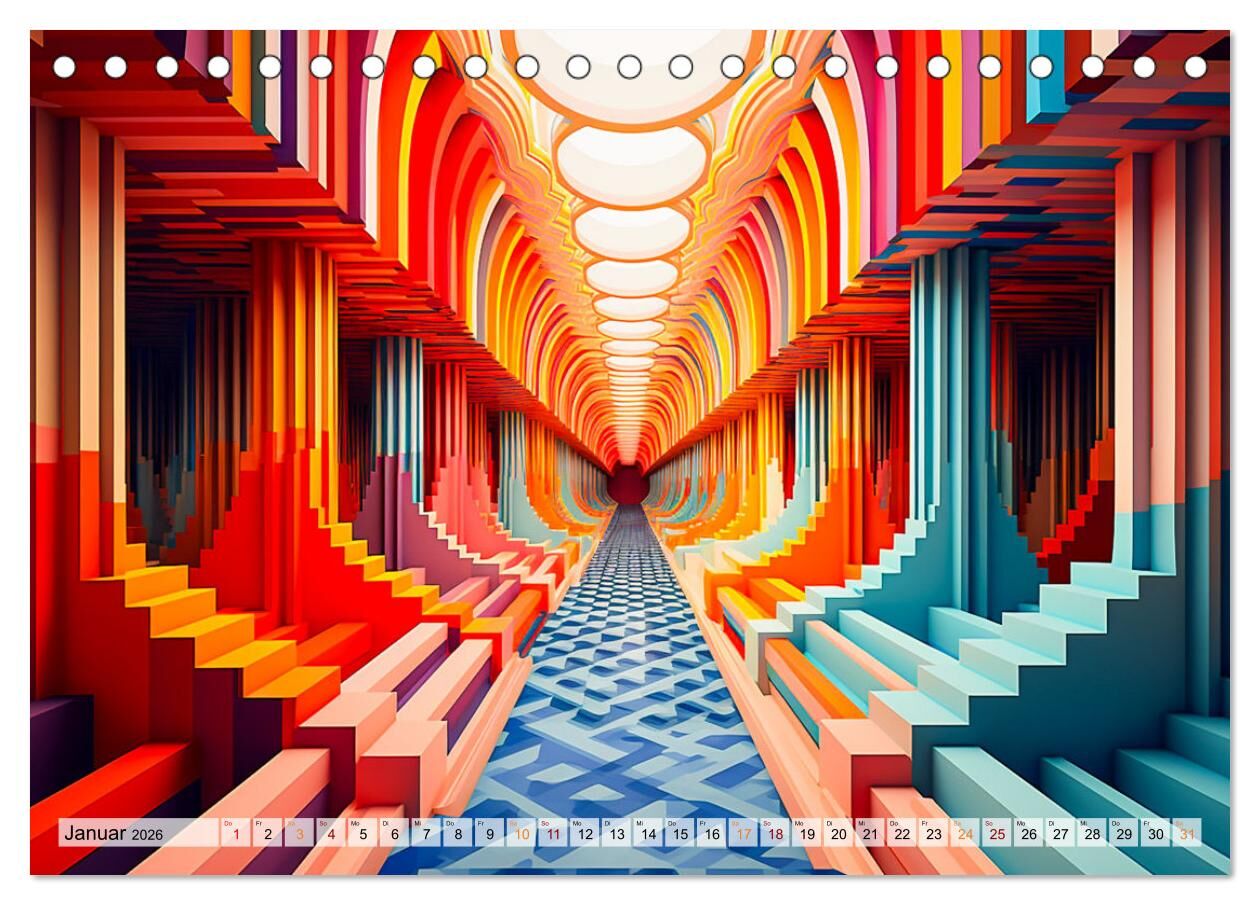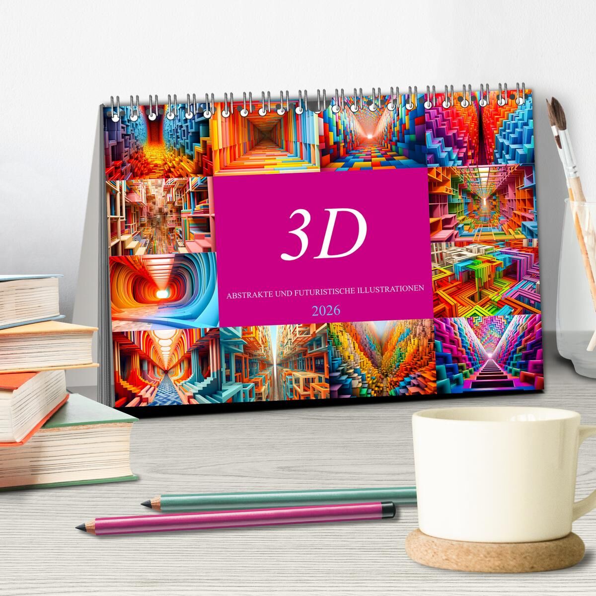 3D - Abstrakte und futuristische Illustrationen (Tischkalender 2026 DIN A5 quer), CALVENDO Monatskalender