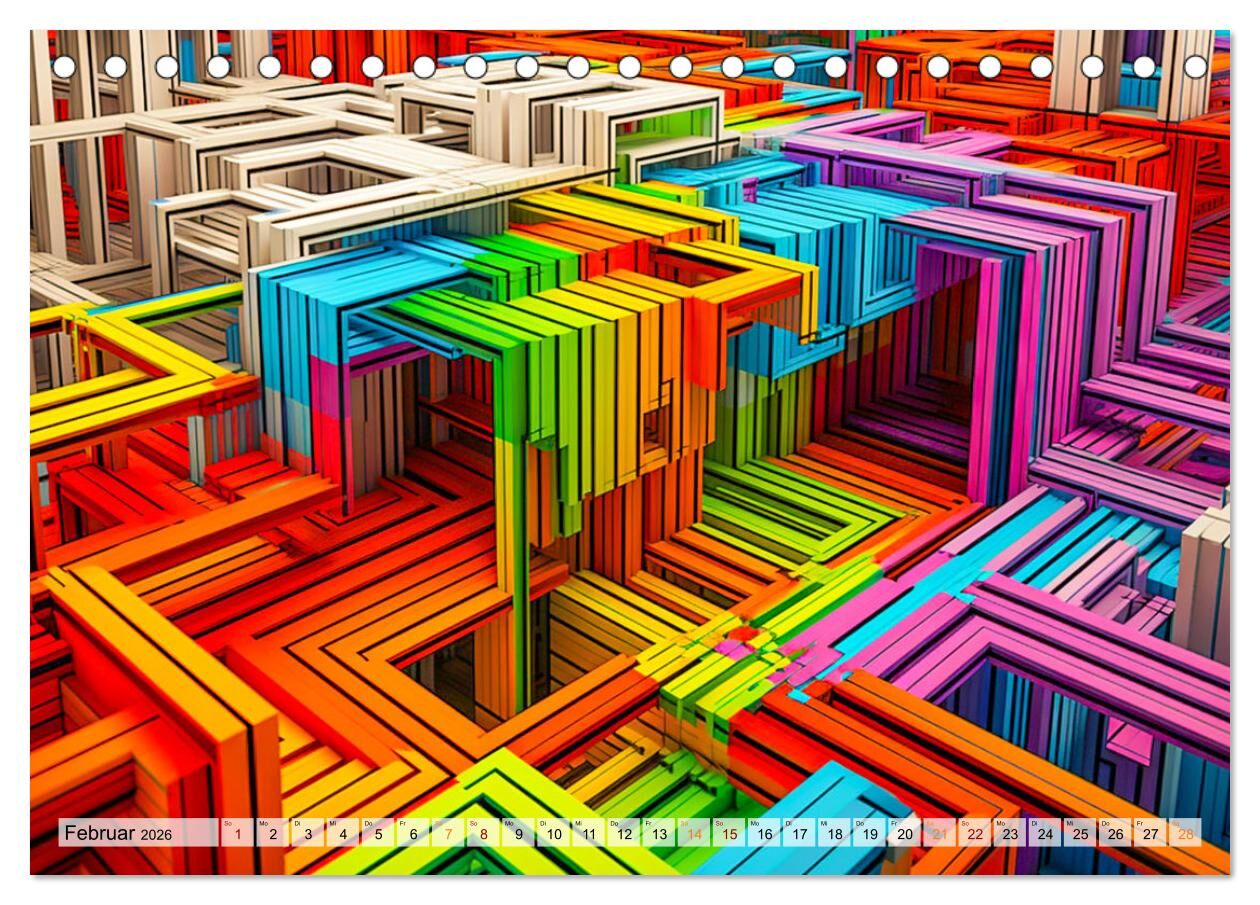 Entdecke eine faszinierende Welt der Kunst mit unserem brandneuen Wandkalender: "3D - Abstrakte und futuristische Illustrationen"! Tauche ein in eine surreale Reise durch die Zeit und den Raum, während du jeden Monat eine atemberaubende 3D-Illustration bewunde...