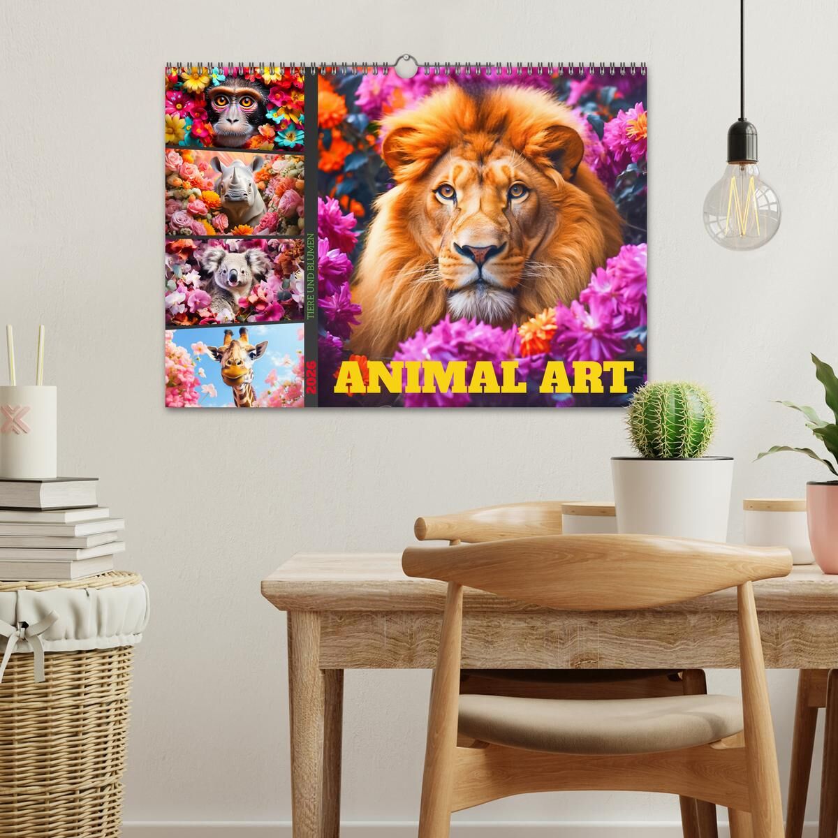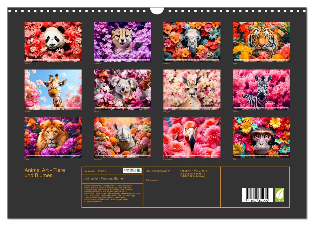 Entdecke die Schönheit der Natur in unserem exquisiten Wandkalender "Animal Art - Blumen und Tiere". Jeder Monat präsentiert eine faszinierende Kombination aus kunstvoll gestalteten Blumen und bezaubernden Tieren, die mithilfe von Photoshop und Künstlicher Int...