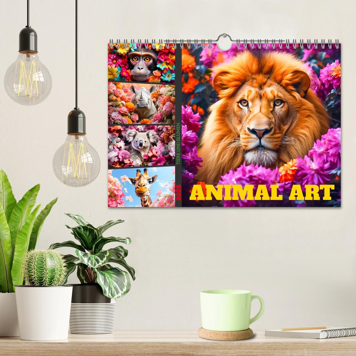 Animal Art - Tiere und Blumen (Wandkalender 2026 DIN A4 quer), CALVENDO Monatskalender