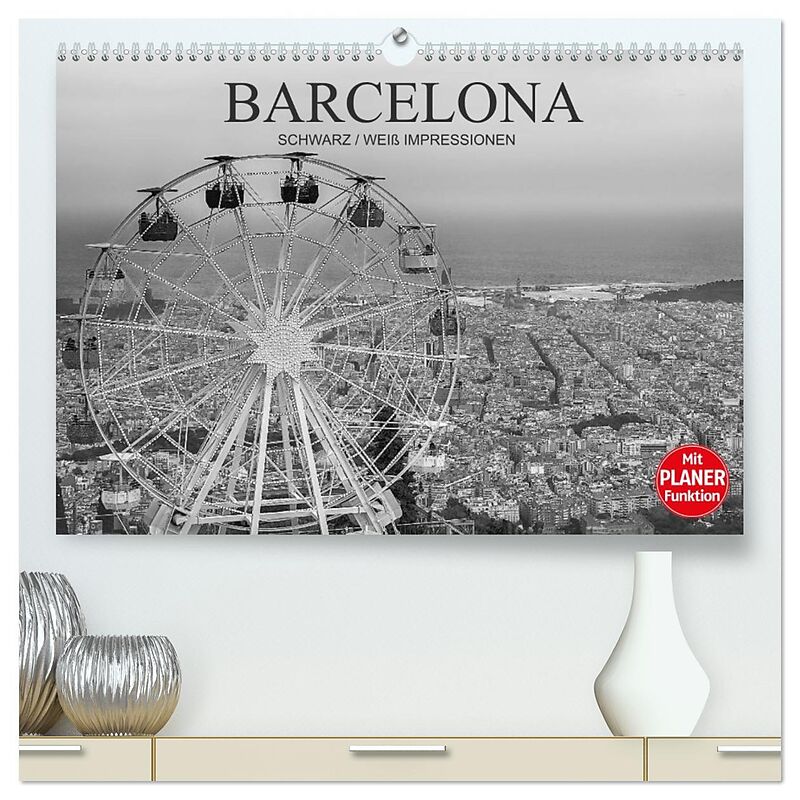 Barcelona Schwarz / Weiß Impressionen (hochwertiger Premium Wandkalender 2026 DIN A2 quer), Kunstdruck in Hochglanz