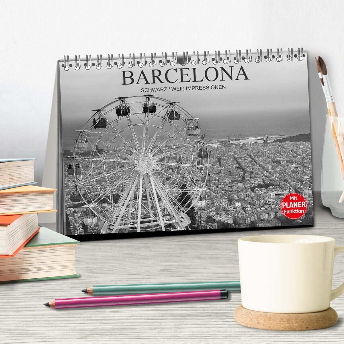 Barcelona Schwarz / Weiß Impressionen (Tischkalender 2026 DIN A5 quer), CALVENDO Monatskalender
