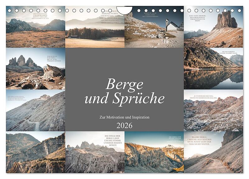 Berge und Sprüche zur Motivation und Inspiration (Wandkalender 2026 DIN A4 quer), CALVENDO Monatskalender