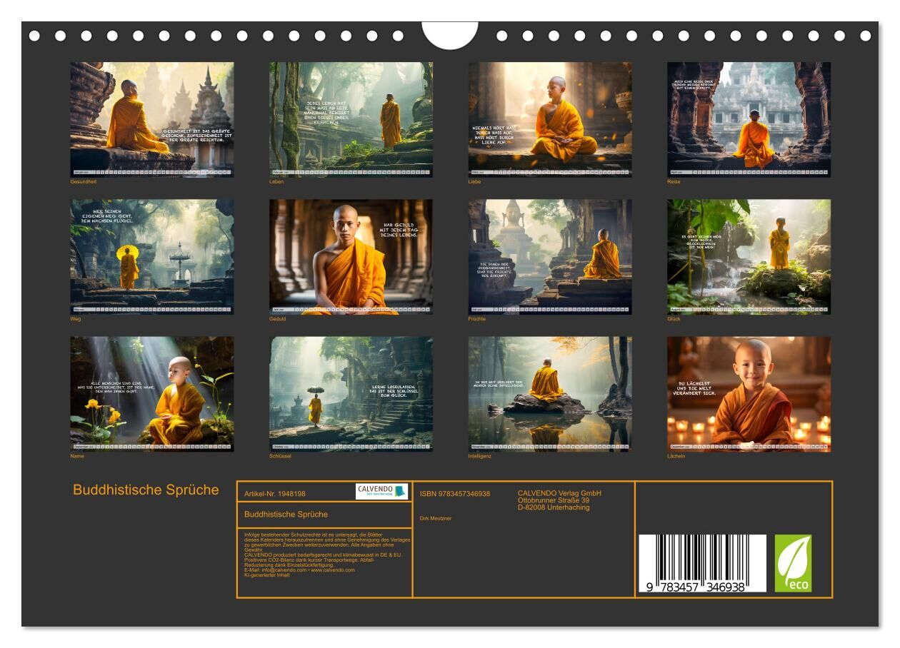 Sie suchen eine tolle Geschenkidee für Freunde und Familie? Dann sind Sie hier fündig geworden. Dieser Kalender mit buddhistischen Sprüchen bietet tägliche Inspiration und Weisheit aus der buddhistischen Tradition. Jeder Monat präsentiert einen einprägsamen Sp...