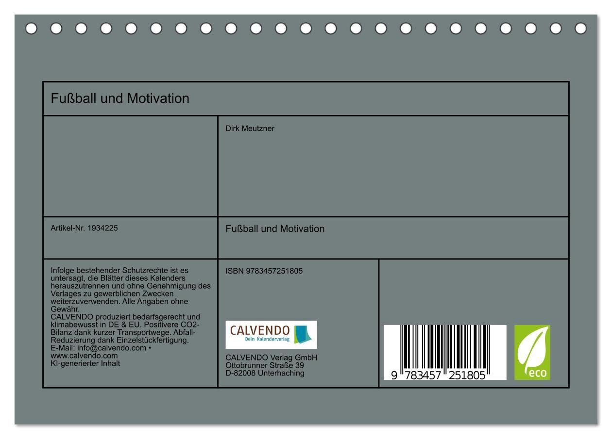 Dieser Fußballkalender vereint die Energie des Spiels mit inspirierenden Motivationssprüchen, die Sie durch jeden Monat begleiten. Jeden Tag ein neuer Anstoß für Ihre eigene Leistung, sei es auf dem Spielfeld oder im Alltag. Er ist nicht nur ein Hingucker, son...
