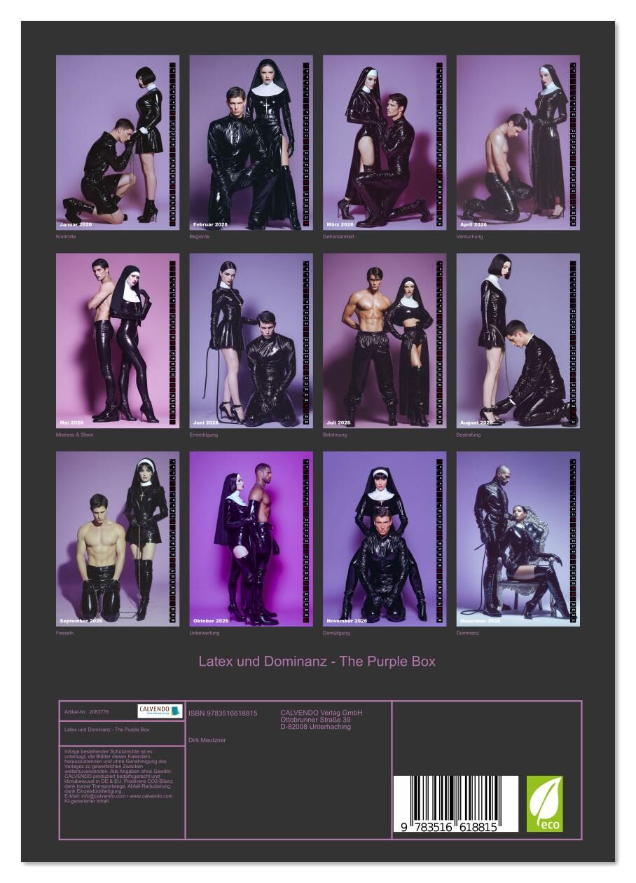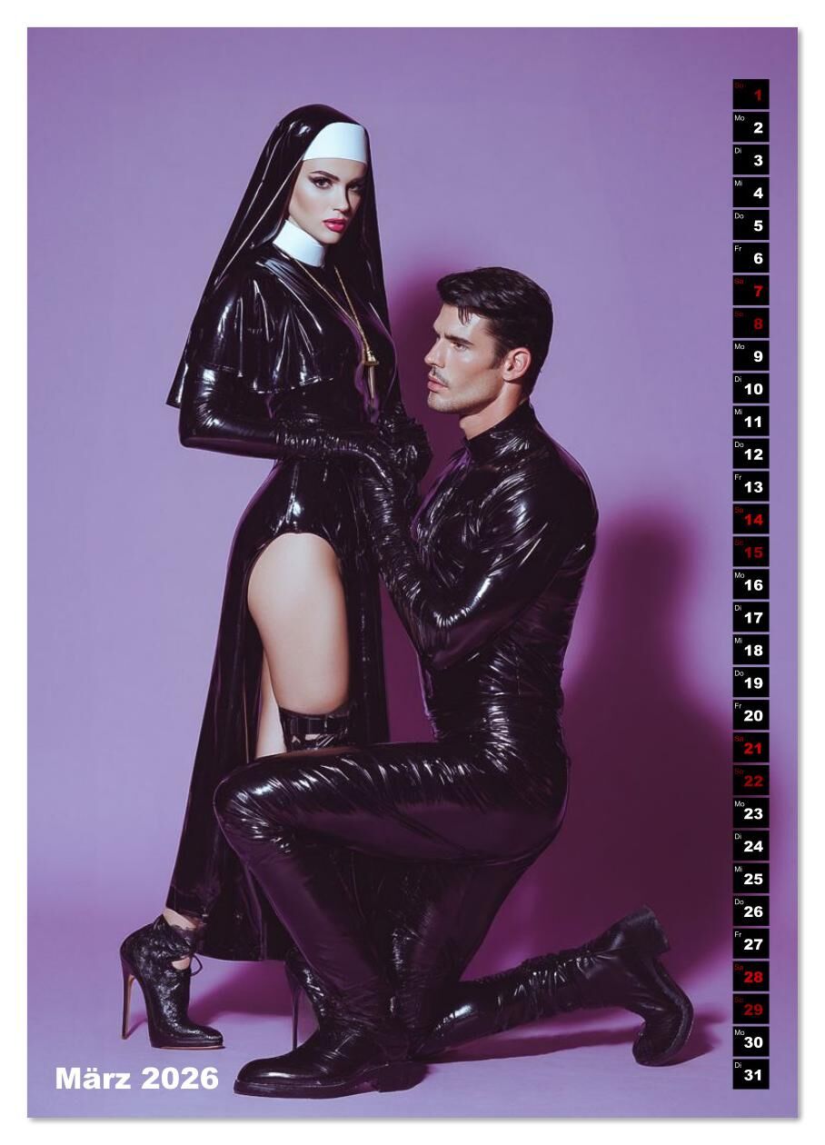 Dieser Wandkalender ist keine Dekoration, er ist ein Statement. Zwölf kunstvoll inszenierte Illustrationen voller Spannung, Dominanz und Hingabe, festgehalten in ästhetischer Perfektion. Lack, Latex und Machtspiele treffen auf provokative Rollenbilder und visu...