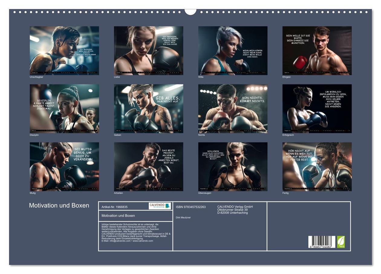 Motivation und Boxen (Wandkalender 2026 DIN A2 quer), CALVENDO Monatskalender