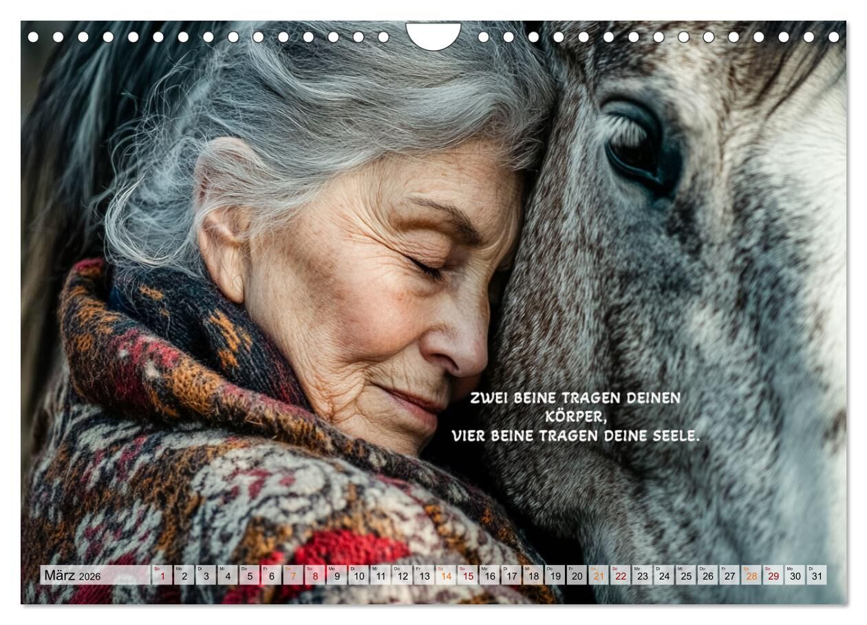 Tauche jeden Monat in die faszinierende Welt der Pferde ein und lasse dich von inspirierenden Seelensprüchen begleiten. Diese atemberaubende Illustrationen majestätischer Pferde mit liebevoll ausgewählten Weisheiten, die Mut machen, Kraft schenken und die Seel...