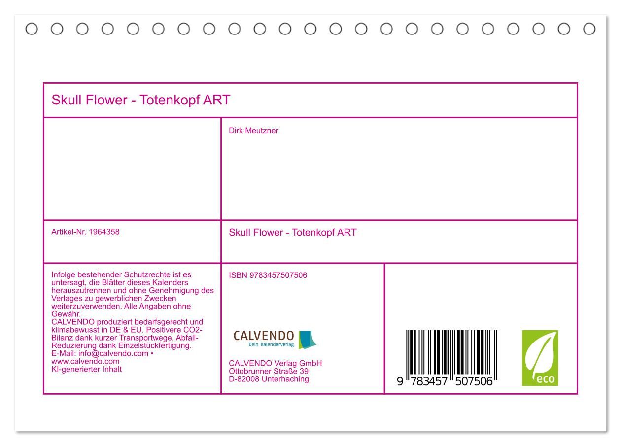 Entdecken Sie den einzigartigen Wandkalender "Skull Flower - Totenkopf ART" und tauchen Sie ein in eine faszinierende Welt der Kontraste! Dieser außergewöhnliche Kalender vereint die Schönheit der blühenden Natur mit der Mystik und Ästhetik von Totenköpfen. Je...