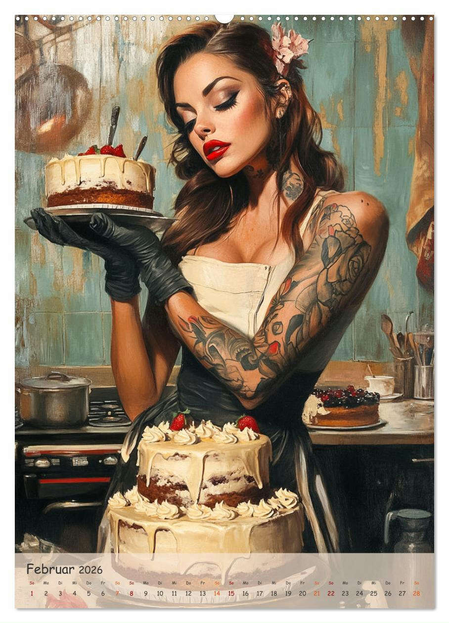 Tattoo Girls und Torten (Wandkalender 2026 DIN A2 hoch), CALVENDO Monatskalender