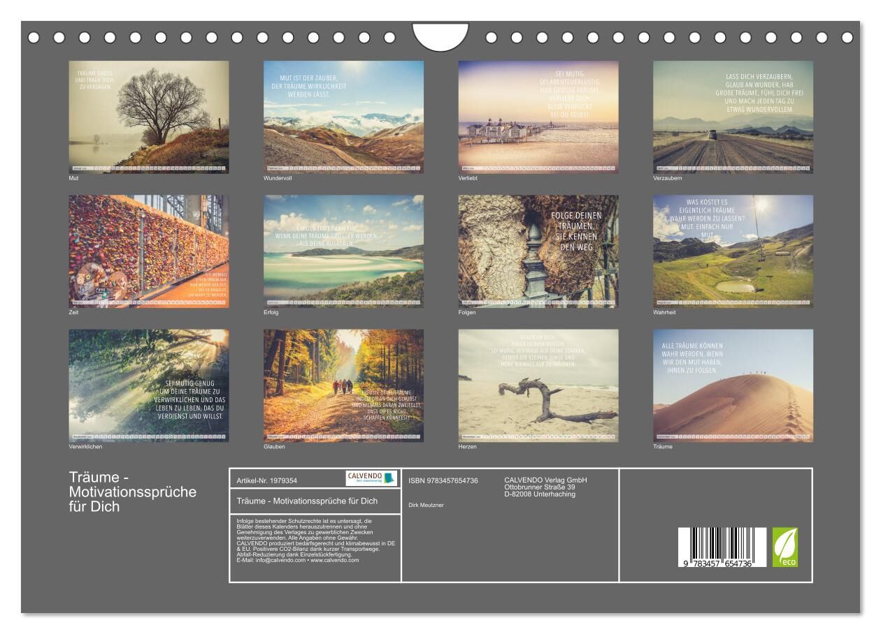 Träume - Motivationssprüche für Dich (Wandkalender 2026 DIN A4 quer), CALVENDO Monatskalender