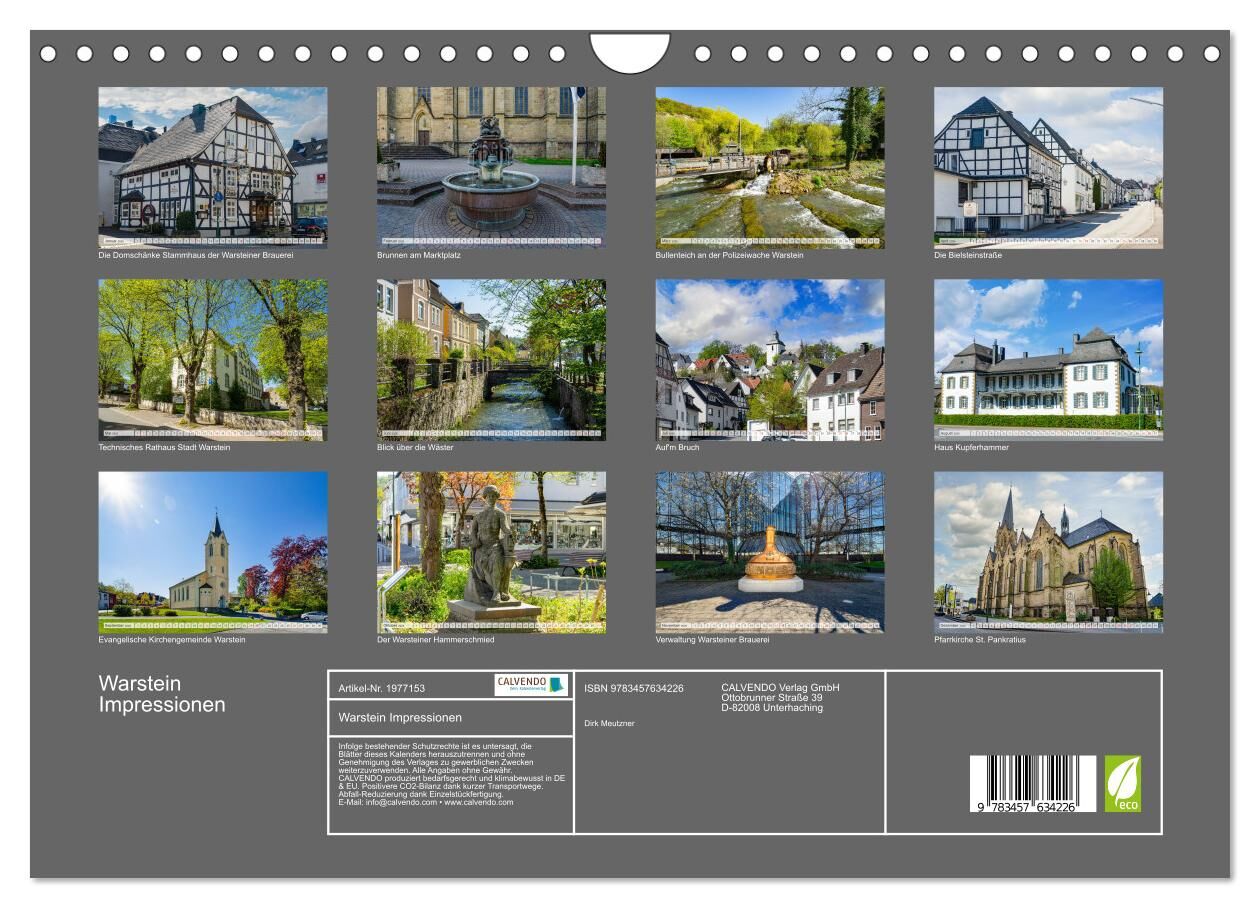 Die Stadt Warstein dargestellt auf zwölf einzigartig farbenprächtigen Aufnahmen des Fotografen Dirk Meutzner. Warstein ist eine Stadt in Nordrhein-Westfalen, Deutschland. Sie gehört zum Kreis Soest im Regierungsbezirk Arnsberg. Dieser einmalige Kalender eignet...