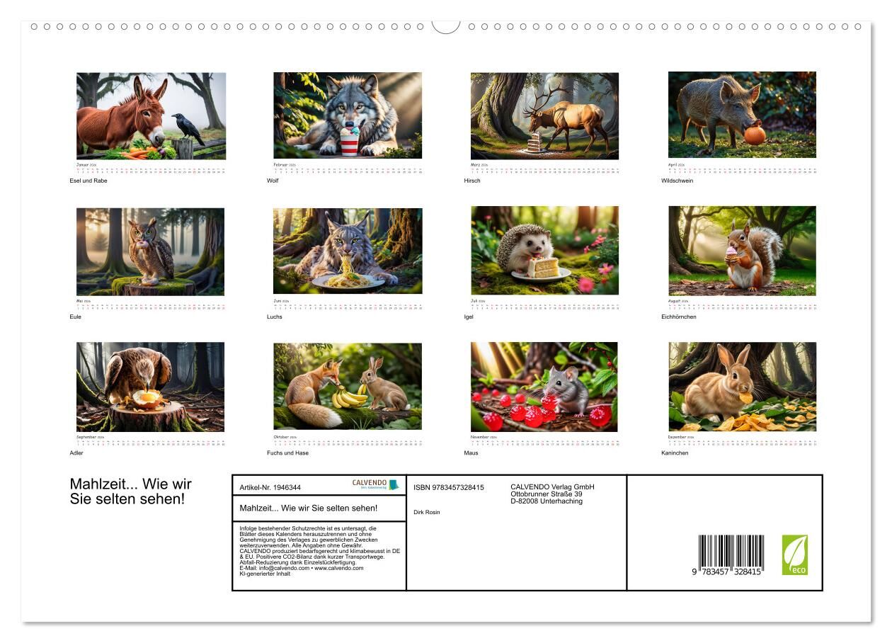 Waldtiere außer Rand und Band. Willlkommen in einer magischen Welt, in der unsere Lieblingswaldtiere ihre kulinarische Komfortzone verlassen! Dieser einzigartige Kalender bringt Sie Monat für Monat in den Bann von charmanten Waldbewohnern aber mit einem besond...