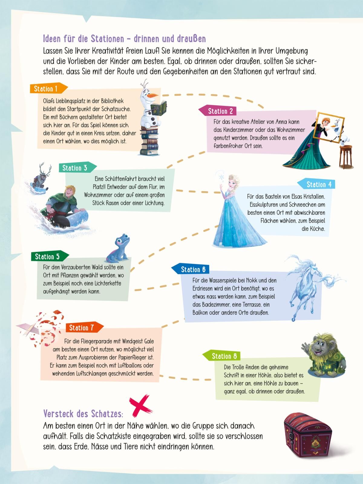 Auf Schatzsuche in Arendelle! Mit Olaf eine Geschichte erfinden, leckere Zutaten mit in der Schlossküche herausschmecken oder mit Elsa Eiskristalle gestalten diese Schnitzeljagd macht jeden Kindergeburtstag zu einem unvergesslichen Eiskönigin-Abenteuer. Die k...