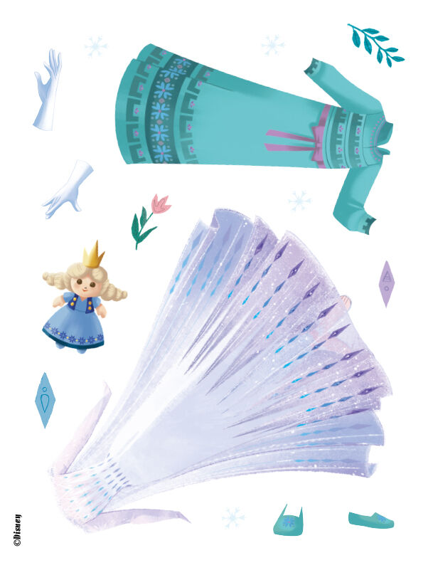 Lass deiner Kreativität freien Lauf und kreiere wunderschöne Outfits für Anna und Elsa! Verziere die Seiten mit den bunten Stickern und male die Schwestern in deinen schönsten Farben aus!