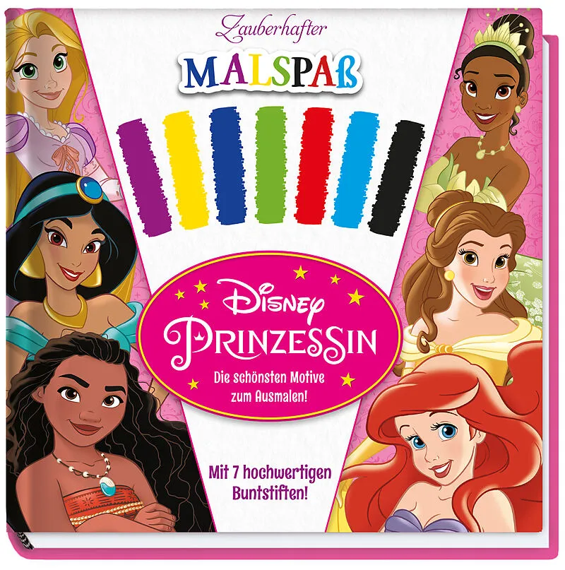 Willkommen in der märchenhaften Welt der Disney-Prinzessinnen! Ob Cinderella, Arielle, Rapunzel oder Vaiana hier findest du von allen Prinzessinnen wunderschöne Motive zum Ausmalen. Ein fantastisches Malset mit 7 hochwertigen Buntstiften!