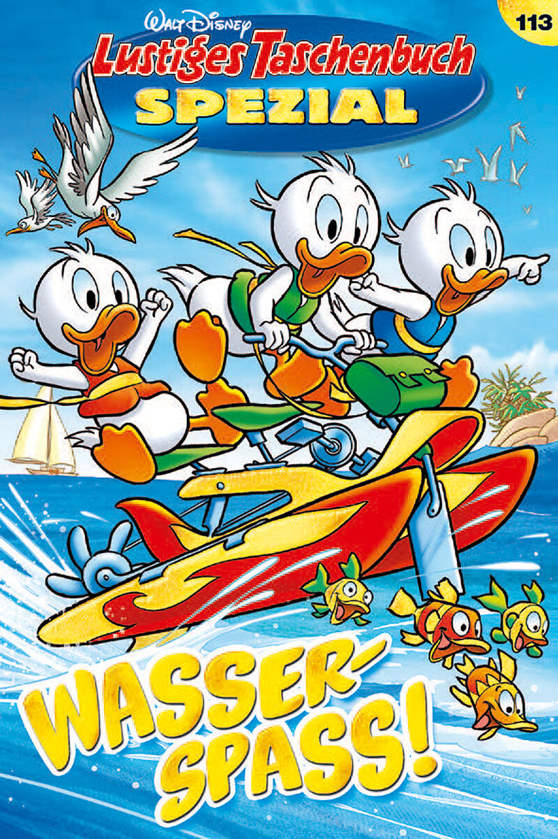 Auf die Liegestühle, fertig, Sommer! Zeit für Wasserspaß ohne Ende. Donald und Dussel sporteln eher unfreiwillig auf Surfbrettern, wo sich doch gerade Donald lieber an den Strand fläzt. Daniel Düsentrieb brütet selbst in sengender Sommerhitze über seinen Ideen...