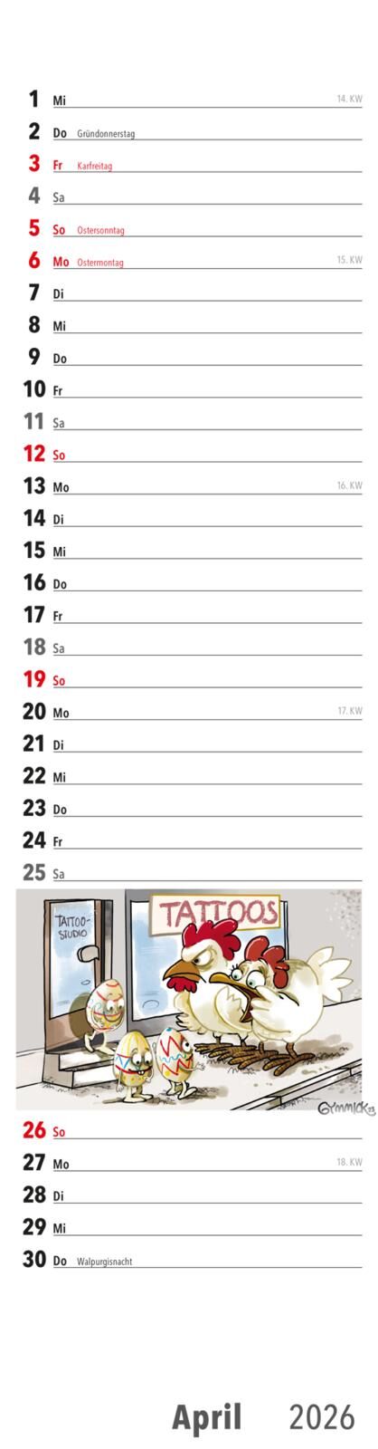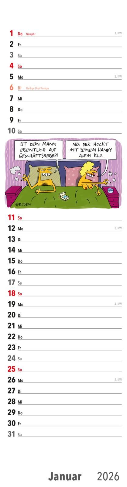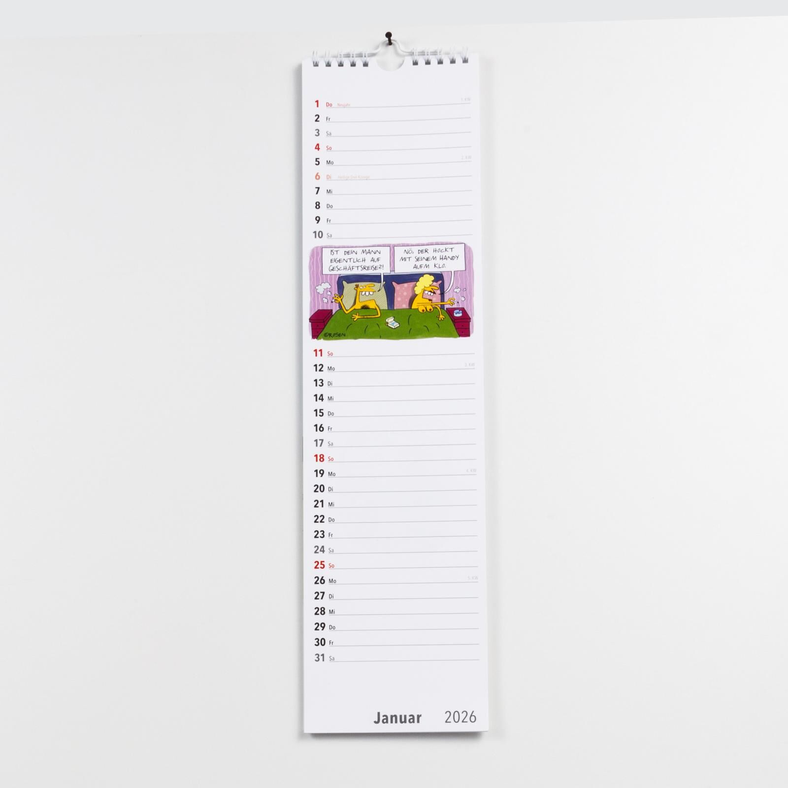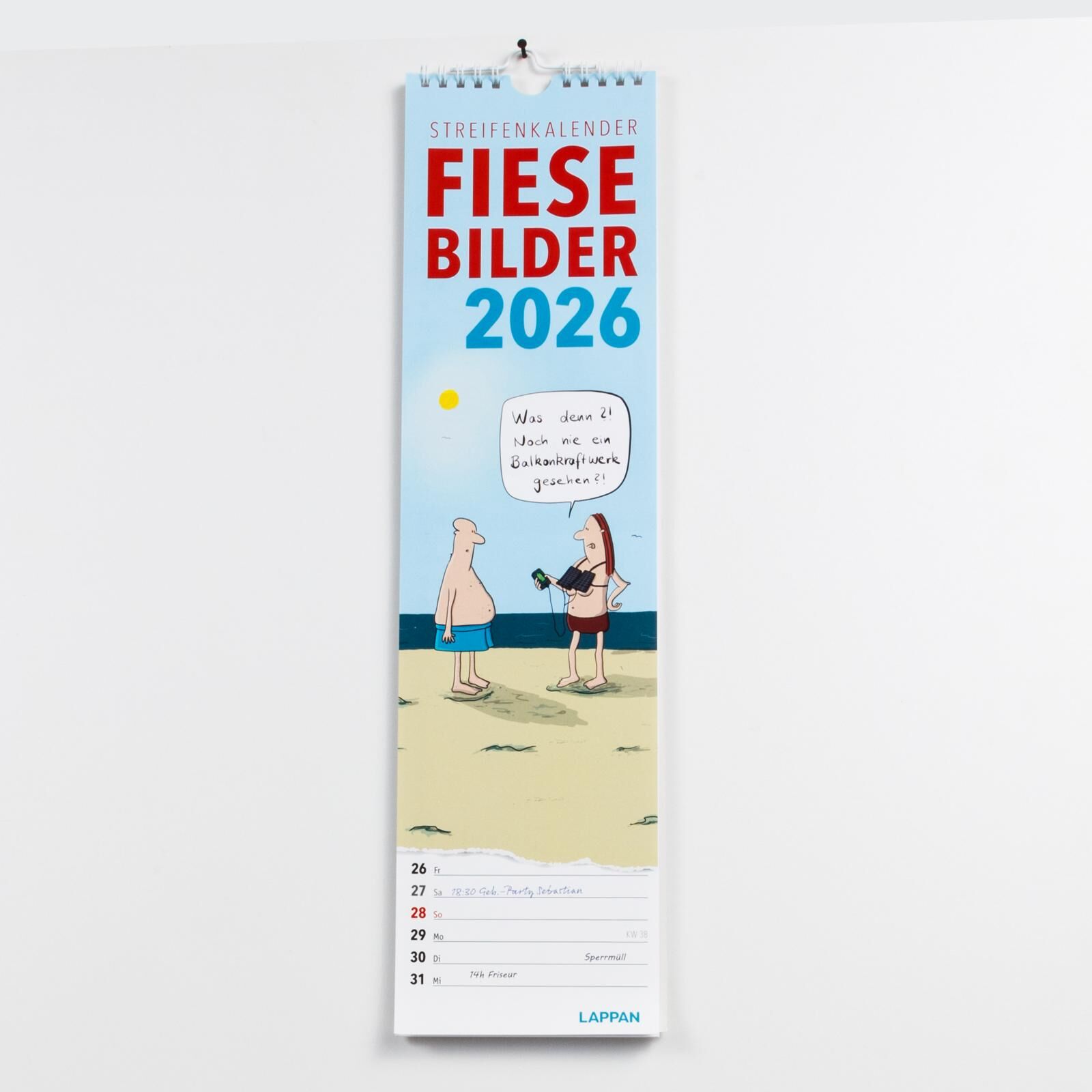 Der Fiese Bilder Streifenkalender 2026! Fiese Bilder ist die Erfolgsmarke für schwarzhumorige Cartoons . Der schmale, praktische Planer für die Wand bietet jeden Monat Platz für Notizen und einen schön fiesen Cartoon. Der Fiese Bilder Streifenkalender 2026 au...