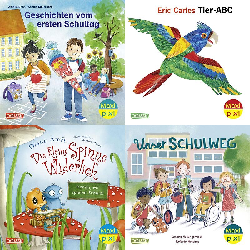 Komm mit in die Schule! In dieser Box versammeln sich die schönsten Geschichten rund um das Thema Schule, Schulanfang und erstes Lernen. Mit dabei ist die beliebte Spinne Widerlich. Maxi Pixi die kleinen großen Bilderbücher im Softcover. Diese Box enthält fol...