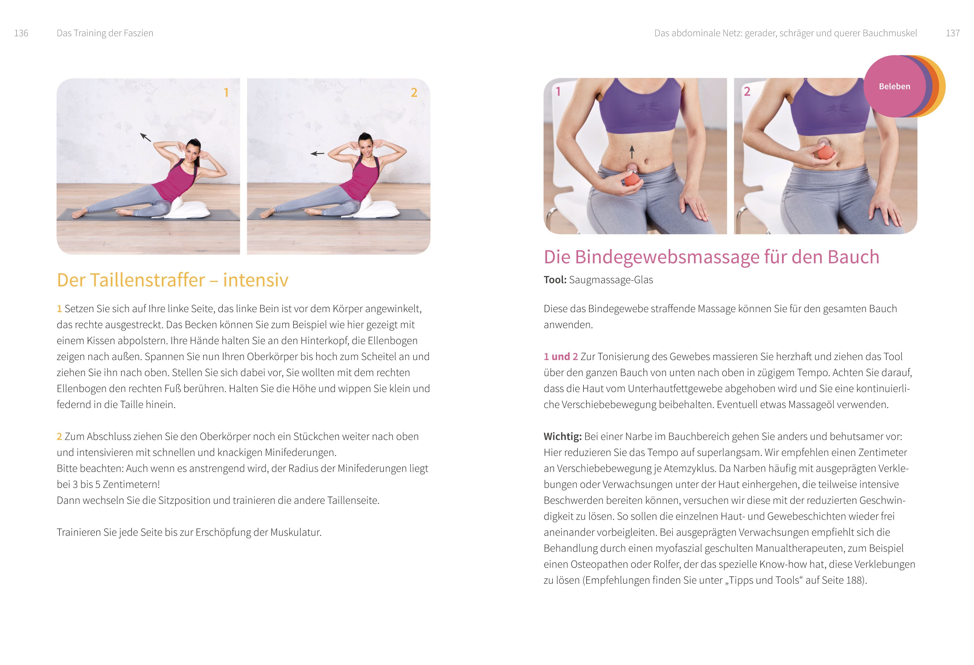 Fit, gesund und schön mit Faszientraining für ein straffes Bindegewebe Die Faszien bilden in unserem Körper ein Netz und geben ihm dadurch Halt, Struktur und Form. Ob der Oberschenkel straff gespannt oder eher wie Wackelpudding aussieht, hängt im Wesentlichen ...
