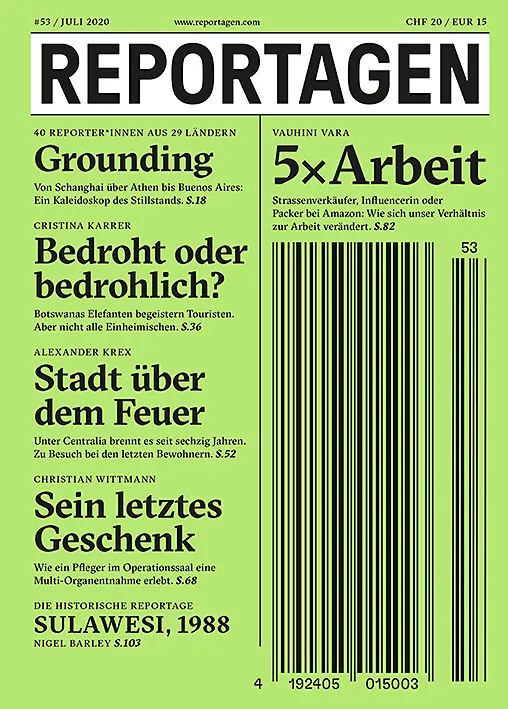 Reportagen schickt die besten Autorinnen und Autoren rund um den Globus. Für Geschichten, die bleiben. In dieser Ausgabe: - Grounding. Von Schanghai über Athen bis Buenos Aires: Ein Kaleidoskop des Stillstands. Von 40 Reporterinnen aus 29 Ländern. - Bedroht od...