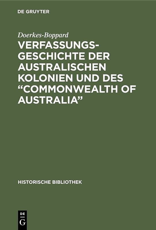 Frontmatter -- Vorwort -- Verzeichnis der wichtigsten Quellen sowie sonstiger Literatur -- Inhalt -- Die Verfaffungsgeschichte der Kolonien -- Die Unionsbestrebungen -- Entstehung und Gründung des Commonwealth -- Das Commonwealth of Australia". -- Die politisc...