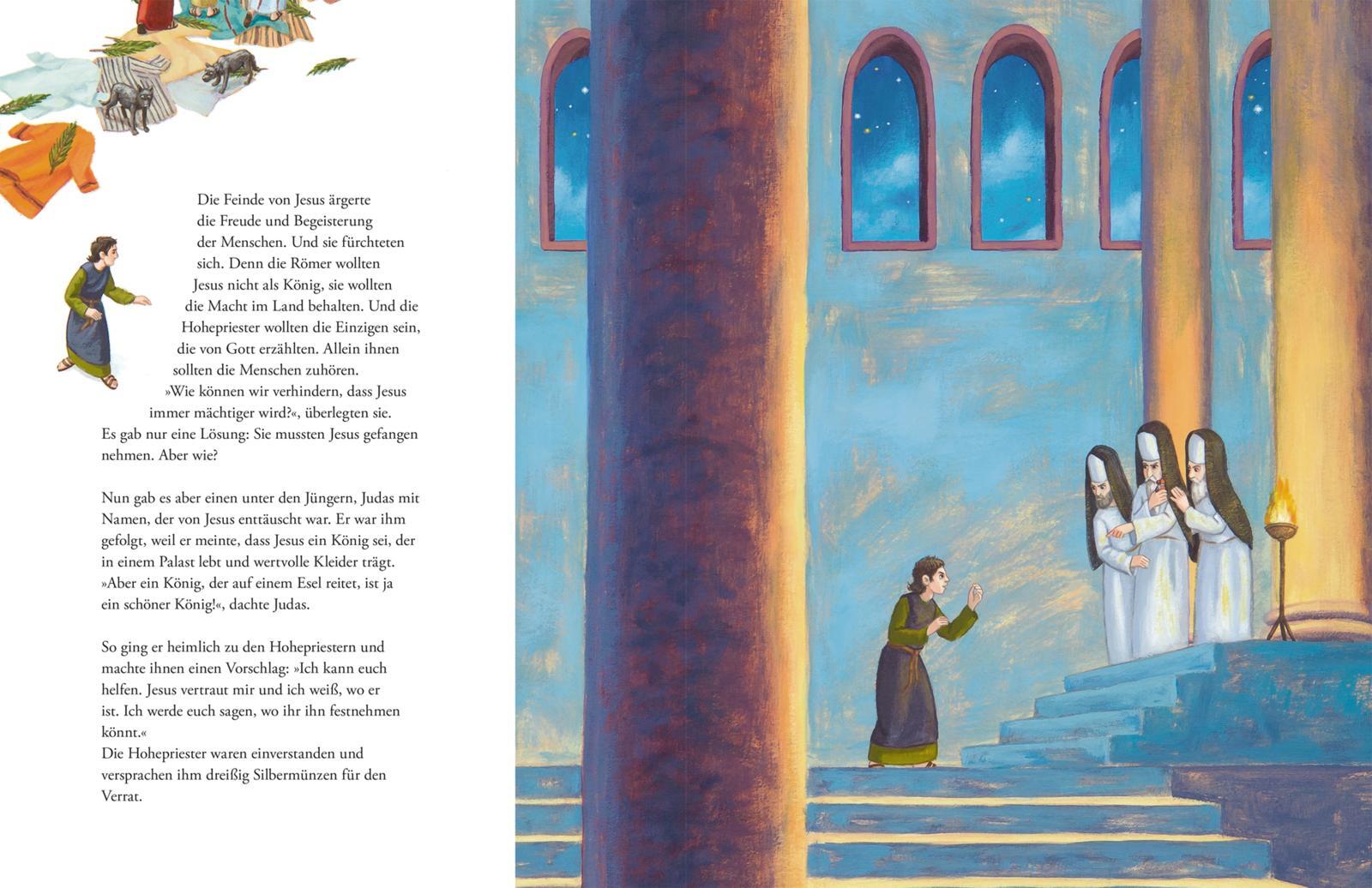 Die biblische Ostergeschichte als Bilderbuch für Kinder ab 4 Jahren. Mit Erklärungen zu Ostern am Schluss des Buches. Warum feiern wir Ostern? Das erfahren Kinder in der biblischen Ostergeschichte. Sie erzählt von Jesu Eselsritt nach Jerusalem, seinem Abendma...