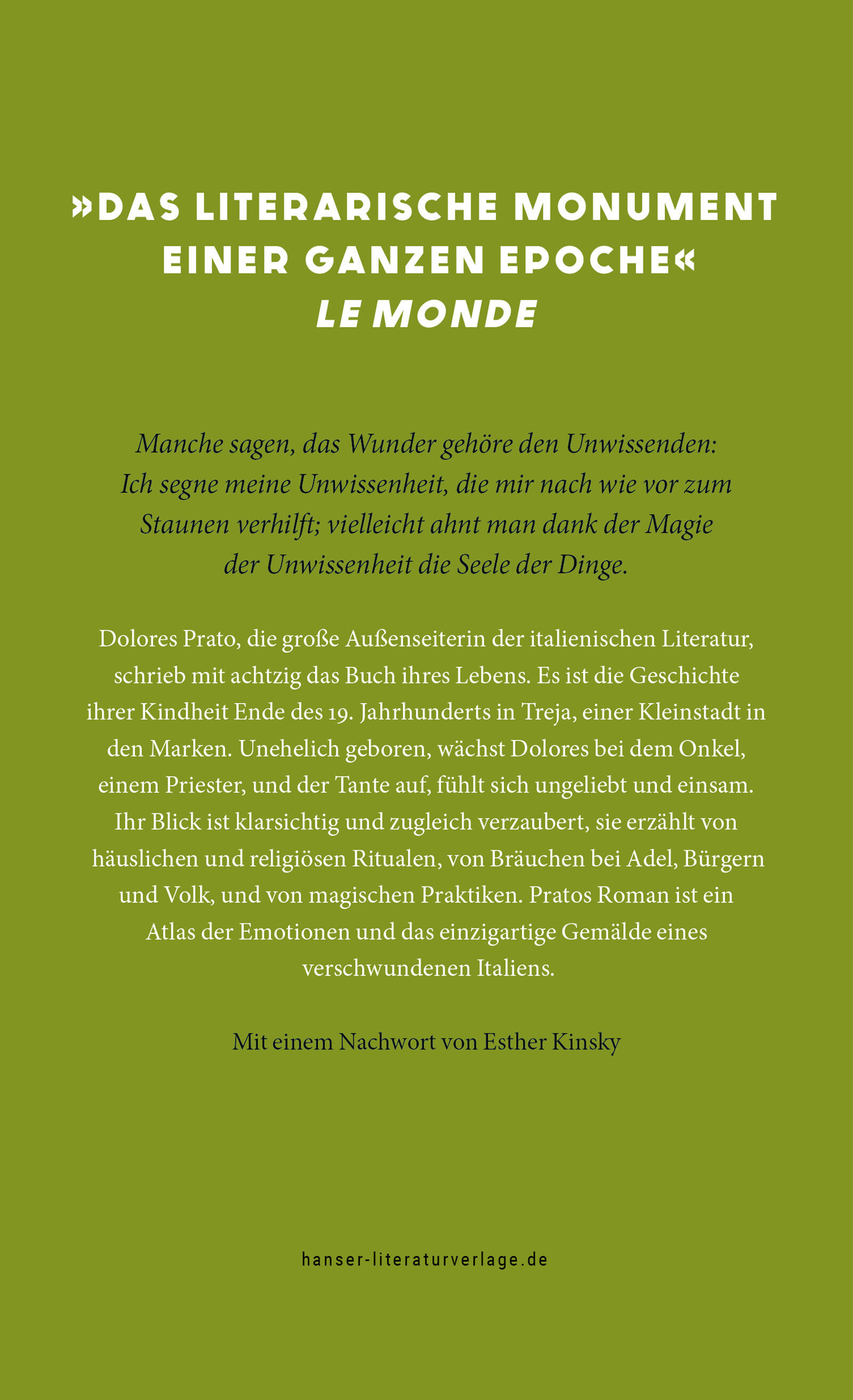 Dolores Prato und das Buch ihres Lebens: Ein magisches Werk, das in eine versunkene Welt entführt das literarische Moment einer ganzen Epoche. Le Monde International als Entdeckung gefeiert und nun erstmals auf Deutsch. Dolores Prato, die große Außenseiterin d...
