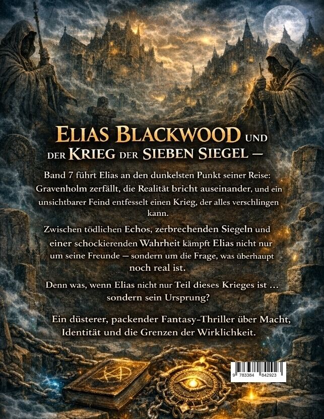 Elias Blackwood und der Krieg der sieben Siegel - Band 7 ist ein düsterer, spannender Fantasyroman voller Magie, Geheimnisse und zerstörerischer Mächte. In diesem mitreißenden Dark-Fantasy-Abenteuer geraten Elias und seine Gefährten in einen Krieg, der nicht n...