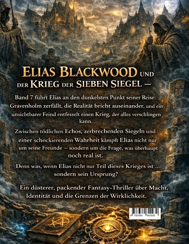 Elias Blackwood und der Krieg der sieben Siegel - Band 7 ist ein düsterer, spannender Fantasyroman voller Magie, Geheimnisse und zerstörerischer Mächte. In diesem mitreißenden Dark-Fantasy-Abenteuer geraten Elias und seine Gefährten in einen Krieg, der nicht n...