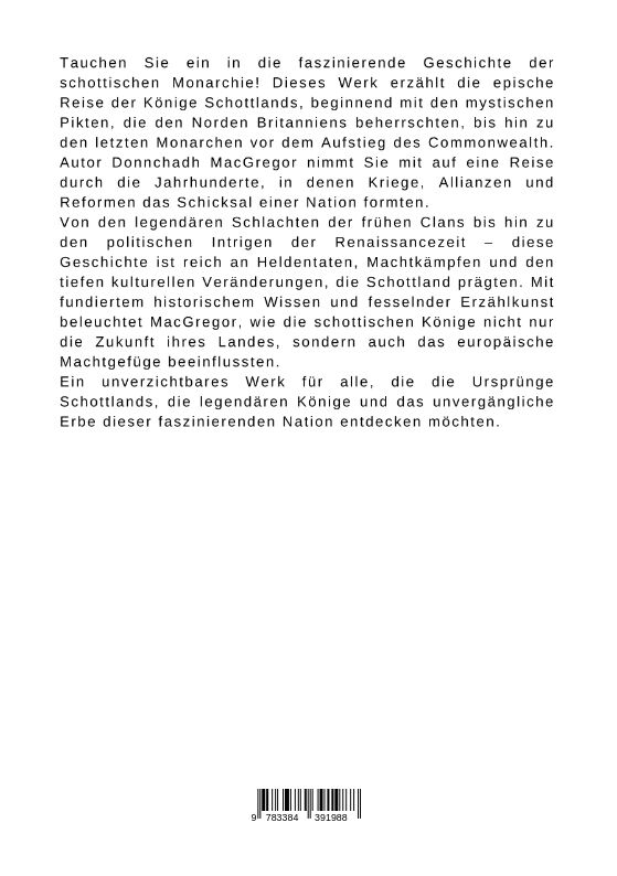 Tauchen Sie ein in die faszinierende Geschichte der schottischen Monarchie! Dieses Werk erzählt die epische Reise der Könige Schottlands, beginnend mit den mystischen Pikten, die den Norden Britanniens beherrschten, bis hin zu den letzten Monarchen vor dem Auf...