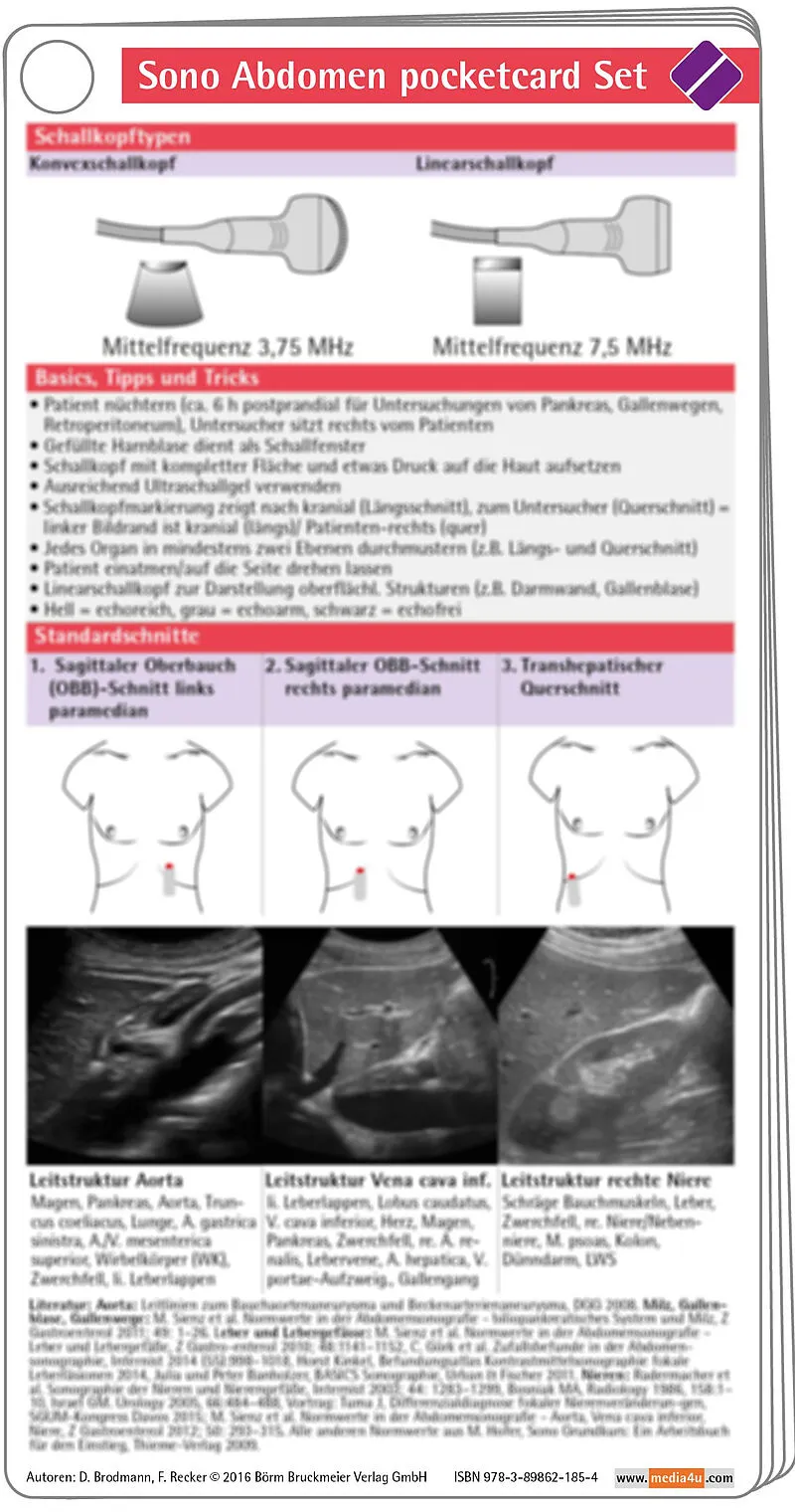 Das Sono Abdomen pocketcard Set führt den Anfänger Schritt für Schritt durch die komplette Ultraschalluntersuchung. Es enthält außerdem eine umfassende Diktatvorlage für alle Sonographierenden. Dabei werden alle sonographischen Normalbefunde und die häufigsten...