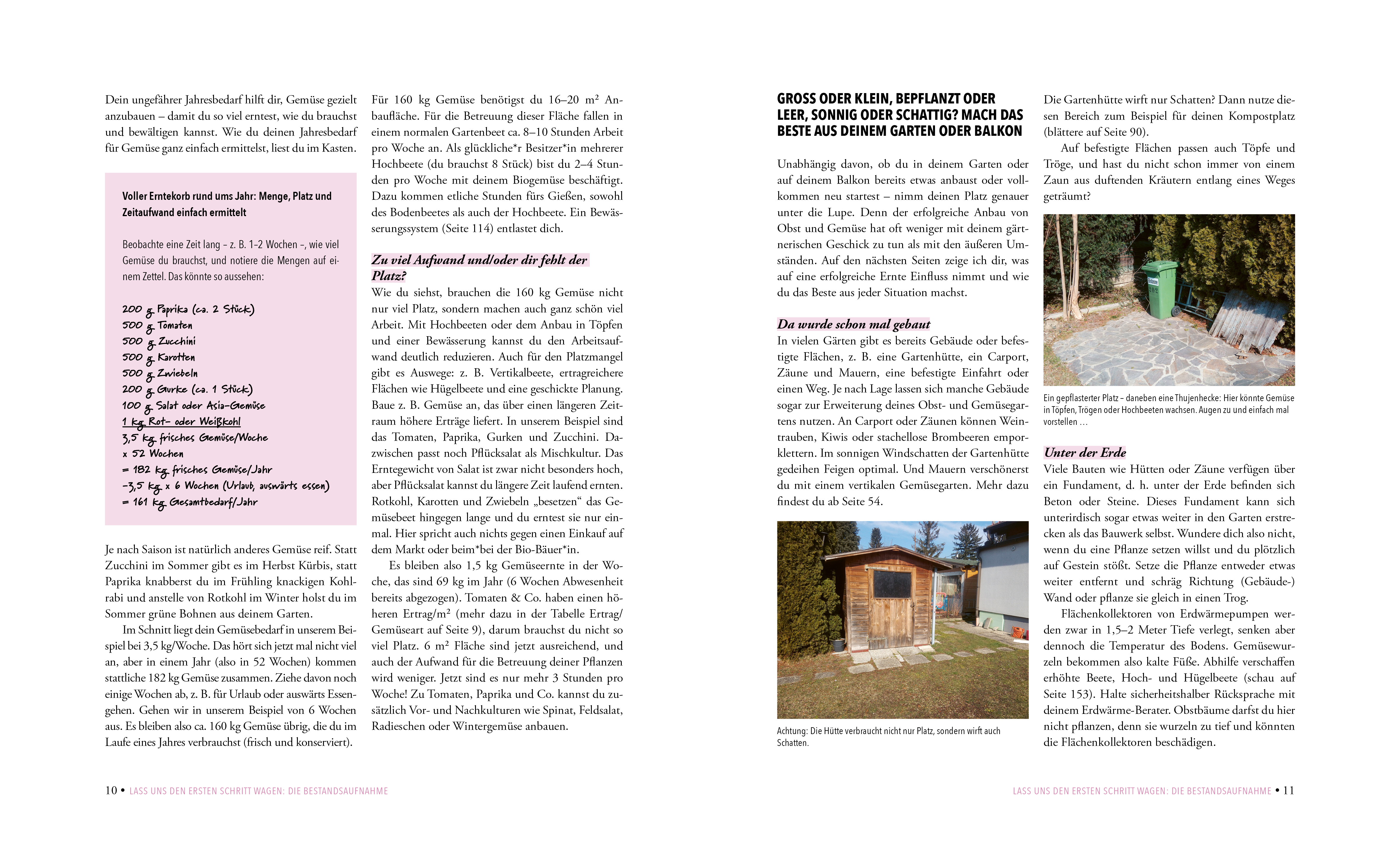 Dieses Buch wird klimapositiv hergestellt, cradle-to-cradle gedruckt und bleibt plastikfrei unverpackt. Um dich herum summt und brummt es, immer wieder weht dir eine leichte Brise frischer Minze um die Nase und zwischendurch naschst du eine leuchtend-rote Himbeere direkt vom Strauch. Klingt das nicht fantastisch? Dürfen wir vorstellen: dein neuer Traumgarten oder Balkon oder Terrasse. Denn: Ganz egal, wie viel Fläche dir zur Verfügung steht, du kannst jeden Ort in ein essbares Eldorado verwandeln: Dein Garten ist ein verwinkeltes Etwas und fristet ein Schattendasein? Die Terrasse ist zwar schön anzusehen, doch im Sommer gleicht sie eher einer Steinwüste? Der Balkon lebt auf kleinem Fuß und die Fassade daneben beginnt schon leicht zu bröckeln? Lass dich davon bloß nicht abschrecken, denn für jeden Winkel gibt es den perfekten Pflanzsack oder das ultimative Beet. Versprochen! Mit dem neuen Buch von Doris Kampas erntest du überall: im Großen und Kleinen, geerdet oder in luftigen Höhen, das ganze Jahr über. First things first: Überleg dir zuerst aber noch, wie viel Zeit du investieren willst und wie üppig deine Ernte ausfallen soll jede Woche eine schöne Portion Gemüsepower fürs Abendessen oder lieber Selbstversorger*in im großen Stil? Alles klar, dann zück Stift und Papier jetzt wird getüftelt für Ernteprofis und alle, die es noch werden wollen. Das-bekommst-du-in-keinem-Laden-Beet oder: tausend Ideen für dein Kopfgemüsekino Du hast also die Lage gecheckt und weißt genau, was du willst und wo du anbauen könntest? Perfekt! Dann brauchst du jetzt noch das richtige Obst und Gemüse und ein paar dufte Kräuter, die du auf Balkon, Fassade, Steinmauer, Hochbeet, Terrasse oder direkt im Gemüsebeet in deinem Garten anbauen kannst. Auch dafür hält die Autorin einige superknackige Ideen für dich bereit, denn sie weiß genau, was wo am besten wächst oder eben auch, was ein bisschen strapazierfähiger ist. Bist du eher der Wenig-Zeit-aber-viel-Bock-auf-Gemüse-Typ oder magst du es eher süß und stehst auf einen Berry-Beautiful-Garten? Entdecke 7 Themenbeete und über 15 Beispielpläne und leg direkt los: Boden checken, Beet planen, Wege anlegen, Töpfe aufmotzen pflanz dir deinen Gemüse-Traum. Was du dafür alles brachst? Das erfährst du ausführlich in diesem Buch, und erhältst obendrauf noch jede Menge Praxistipps. Jetzt aber los: Schaufel raus und losbuddeln für deinen perfekten Wunschgarten Du weißt jetzt schon genau, was du willst und wo gebuddelt werden soll prima! Fehlen nur noch die Anleitungen dafür. Und genau diese Schritt-für-Schritt-Anleitungen, detaillierten Pläne und Tipps für deine Anbauflächen findest du in diesem Buch. Das Beste daran: Alle sind ganz individuell abwandelbar und anpassungsfähig an genau deinen Standort ganz egal, ob im verwinkelten Schattengarten, ob es an der alten Steinmauer hoch hinaus gehen soll oder der Kompostplatz dein Gemüse-to-be-place ist. Dein Fleckchen Grün ist einzigartig und soll es auch bleiben mit dem Know-how der A…