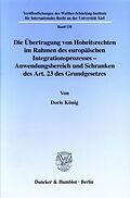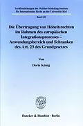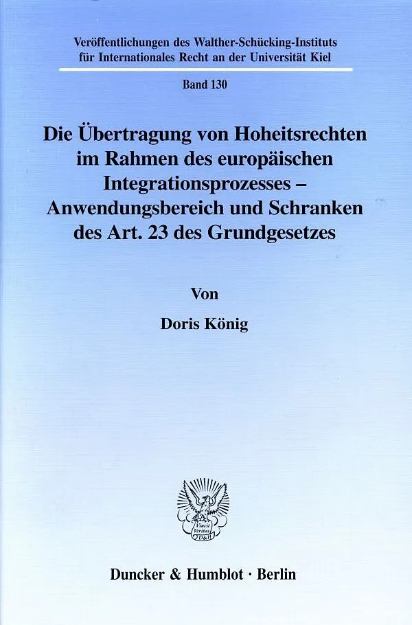 Nach der Unterzeichnung des Vertrages von Maastricht wurde eine neue verfassungsrechtliche Grundlage für die Mitwirkung Deutschlands an der Entwicklung der Europäischen Union, der Art. 23 GG, in das Grundgesetz eingefügt. Die Autorin befaßt sich ausführlich mi...