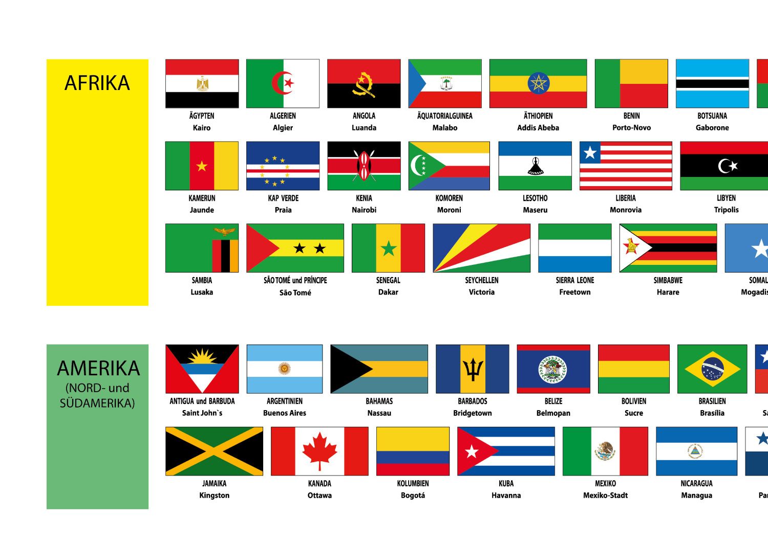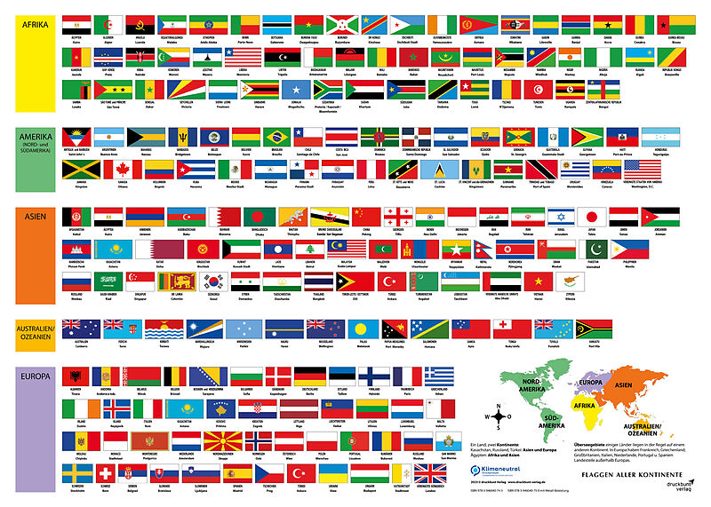 Südafrika hat gleich drei Hauptstädte, (Pretoria, Kapstadt, Bloemfontein) andere Länder wunderbare Namen und prächtige Flaggen. Wie diese aussehen erfahrt ihr auf unserem neuen Flaggenposter der Welt. So viele Farben, Staaten und Städte! Wer weiß die Hauptstad...