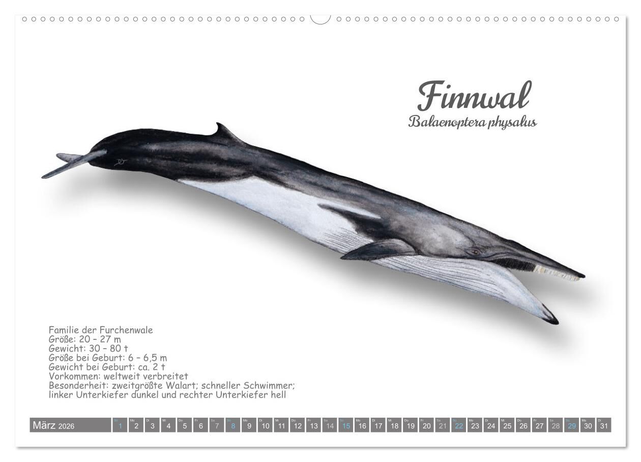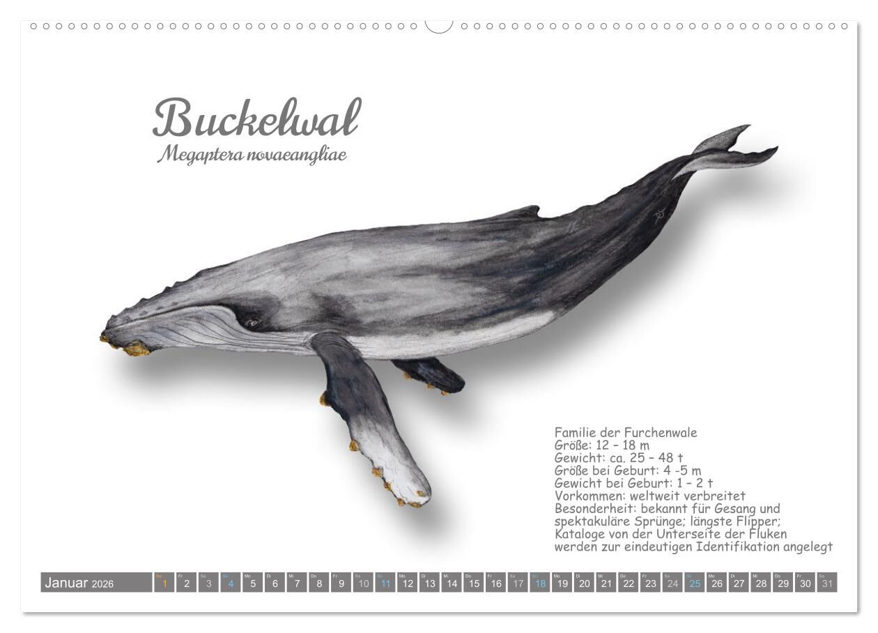 Wale und Delfine Steckbriefe (hochwertiger Premium Wandkalender 2026 DIN A2 quer), Kunstdruck in Hochglanz